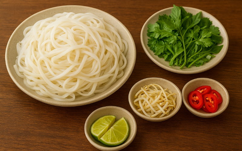 Bước 4: Chuẩn bị bánh phở và rau ăn kèm